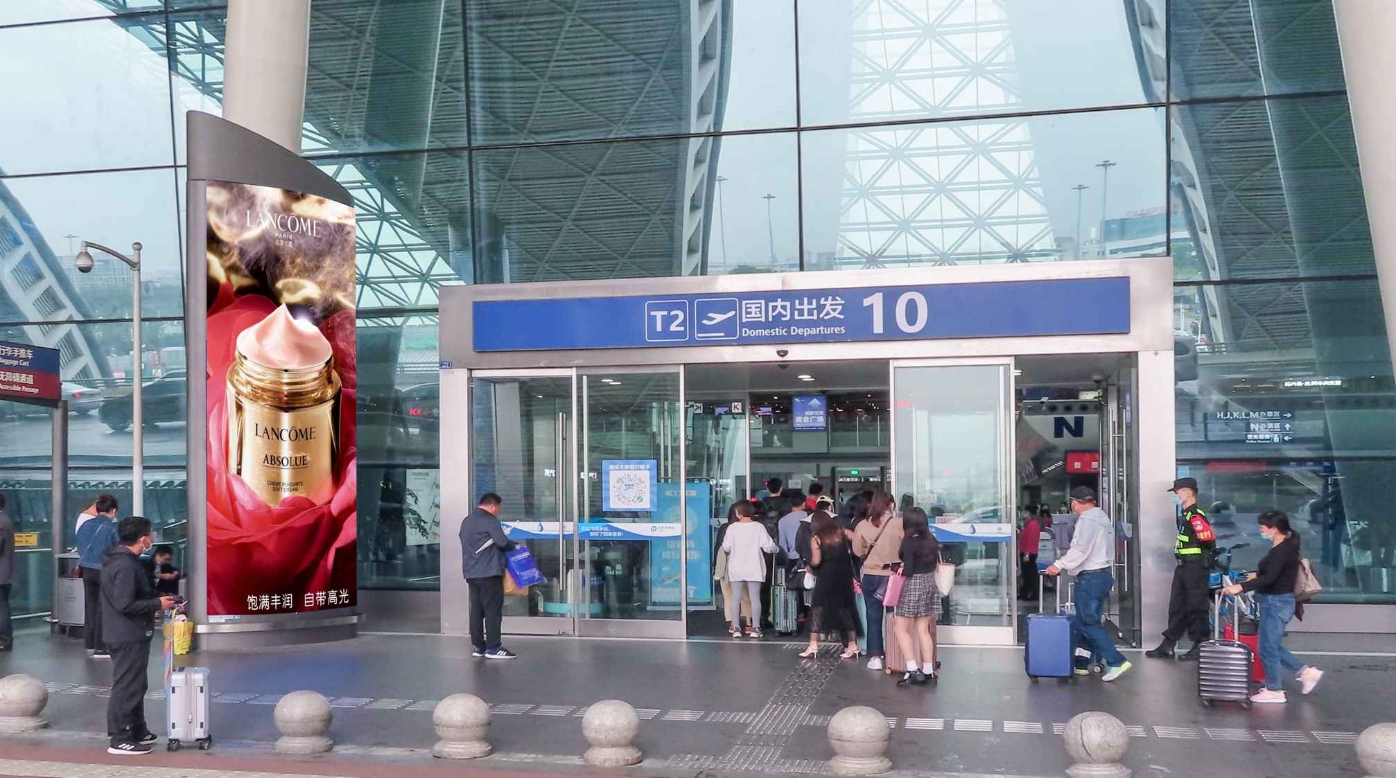 廣告位置:T2航站樓二層國(guó)內(nèi)出發(fā)廳大門(mén)入口處